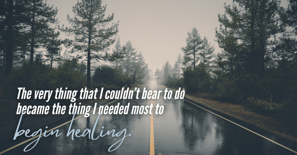 Here’s the thing … within the next week, I began to inch forward again. I picked up my computer and read through a few documents I had pulled for research on my next book. I didn’t spend a lot of time on it, but just enough to give my brain what it needed—a break from the grief and destruction around me. The very thing that I couldn’t bear to do became the thing I needed most to begin healing.