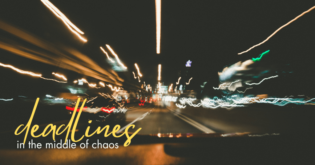Here’s the thing: When I agreed to the deadline schedule, I thought I had plenty of time. At the time, I could have never foreseen the circumstances that were about to occur. Suddenly the deadline was just a few weeks away and I had made very little progress. How could I have lost two whole months?