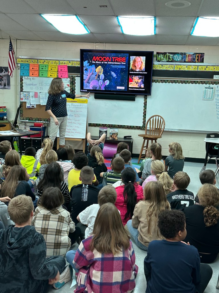 Moon Tree History and Behind the Scenes Stories (Grades 2-4): This presentation takes a deep dive into the history behind the moon trees. Throughout the presentation, I share stories about Astronaut Stuart Roosa and his flight to the moon on Apollo 14 that aren’t included in the book. Session includes a reading of Moon Tree and a Q&A session with the students. (45 minutes)